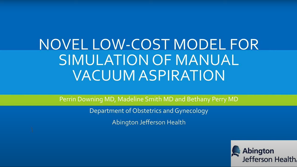 Novel Low-Cost Model for Simulation of Manual Vacuum Aspiration by Perrin Downing, MD, Madeline Smith, MD, Bethany Perry, MD; Abington Jefferson Health.